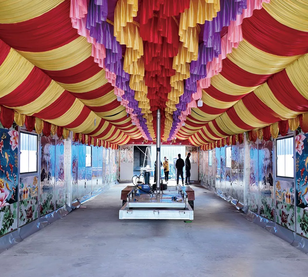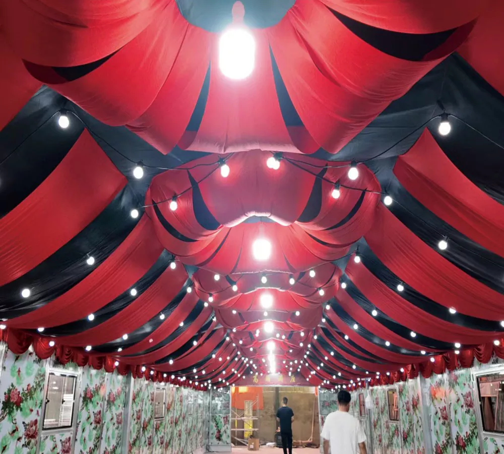 კარავი შეიძლება გაფართოვდეს ან შემცირდეს "სექციებით", რათა მოერგოს სხვადასხვა მასშტაბის საბანკეტო ღონისძიებებს, შემცირდეს უმოქმედო ადგილი. და ადგილის გამოყენების გაუმჯობესება.